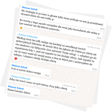 Rozwiązujemy problemy „tu i teraz” na Whatsapp’ie, kiedy pojawiają się w Twoim biznesie.